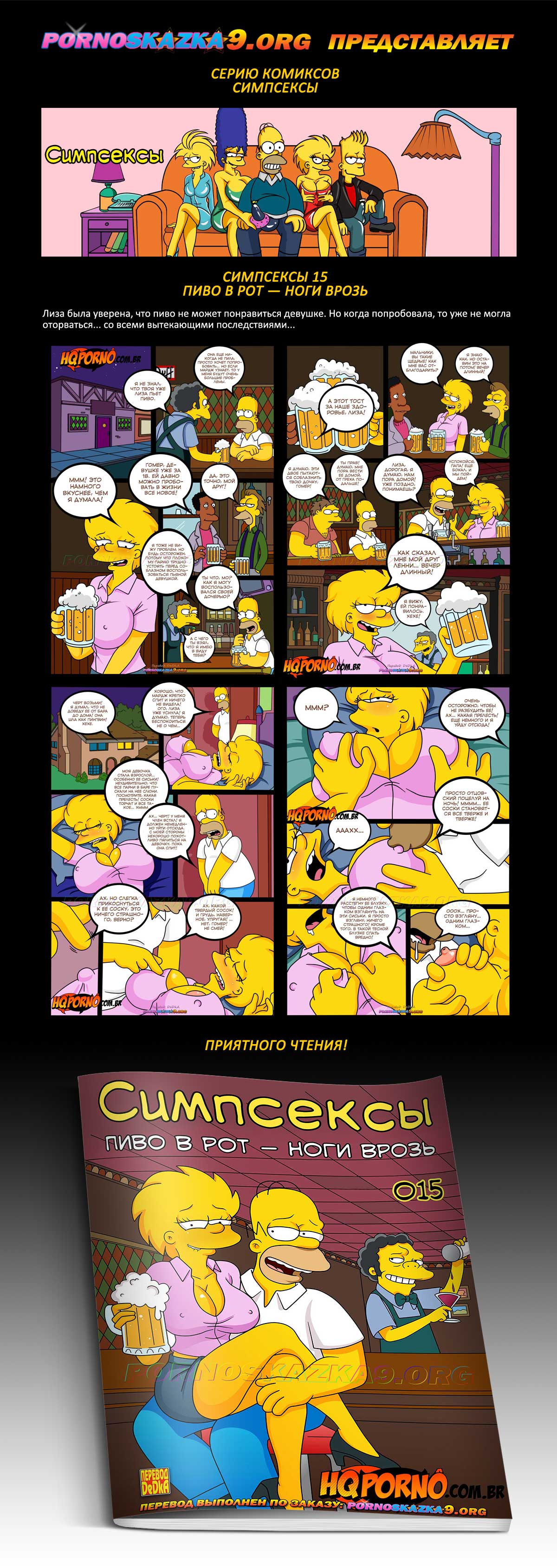 Порно комикс Симпсексы. Часть 15. Пиво в рот — ноги врозь. Лиза была уверена, что пиво не может понравиться девушке. Но когда попробовала, то уже не могла оторваться… со всеми вытекающими последствиями…